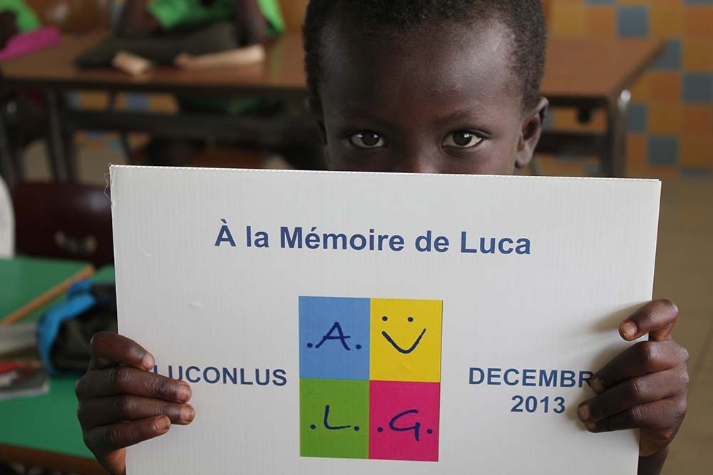 Fig. 2 – Un bambino espone il cartello dell’Associazione LUCONLUS, in memoria di Luca Grisolia
