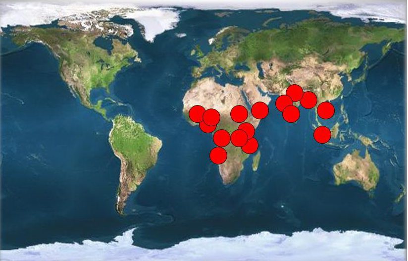 Ora sovrapponiamo le aree che già oggi vedono i principali conflitti/situazioni di instabilità (Mali, Niger e Nigeria, Repubblica Centrafricana, Sud Sudan, Corno d’Africa, zona Pakistana, terrorismo in Asia sud-orientale):